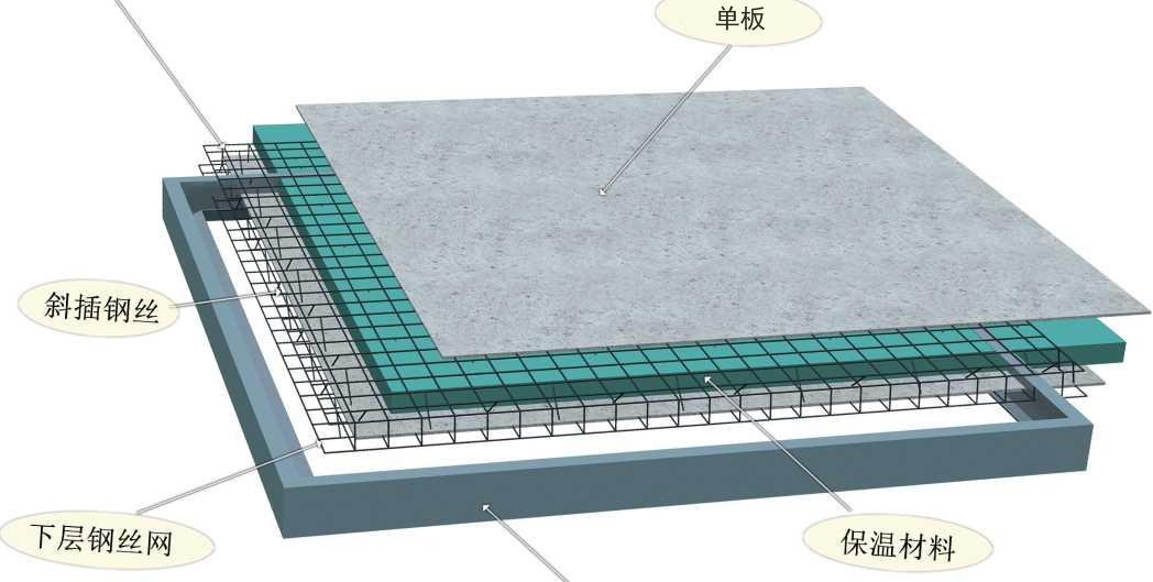 保温夹芯复合轻型板(有钢边框,网架板)结构层次关系