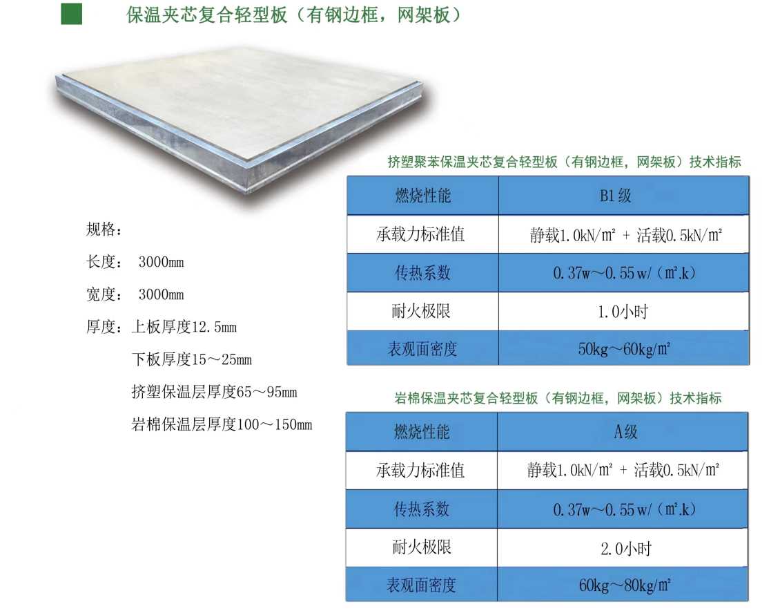 保温夹芯复合轻型板(有钢边框,网架板)