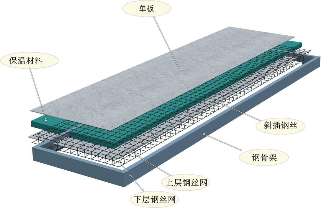 保温夹芯复合轻型板(大跨度屋面板)结构层次关系