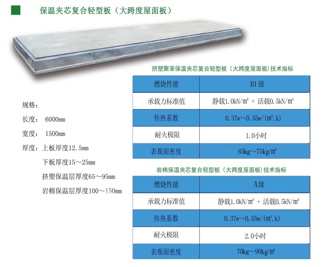 保温夹芯复合轻型板(大跨度屋面板)